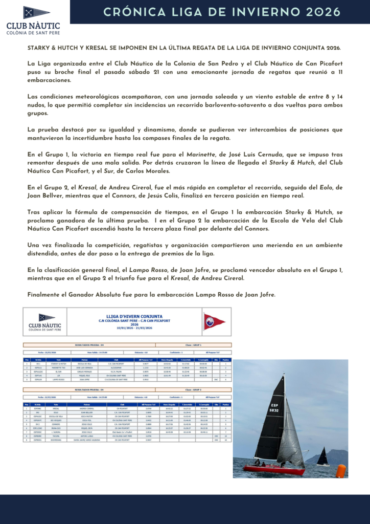 LAMPO ROSSO DE JOAN JOFRE VA SER EL GUANYADOR DEL XV EDICIÓ DEL TROFEU FARALLO D’AUBARCA A2.
